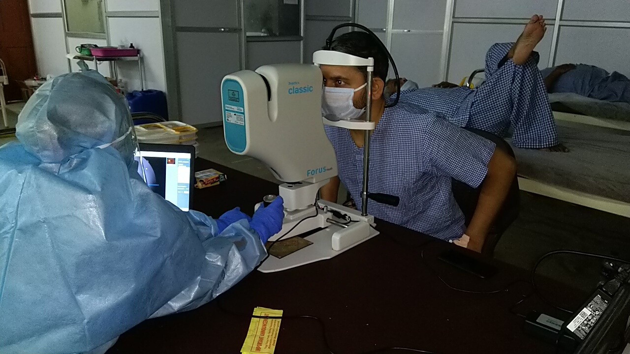 (A patient in a BMC ward in Mumbai getting tested for comorbidities with a fundus camera)